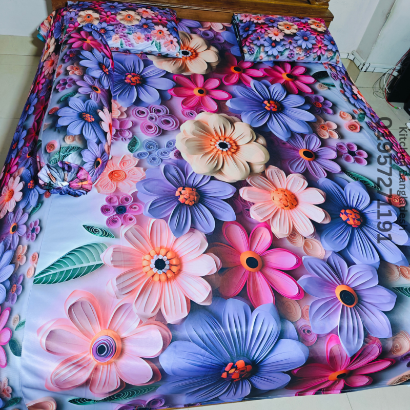 B1 Stylish 3d Bed + Pillow Cover (Premium Quality ১১০০+ গ্রাম গ্যারান্টি)
