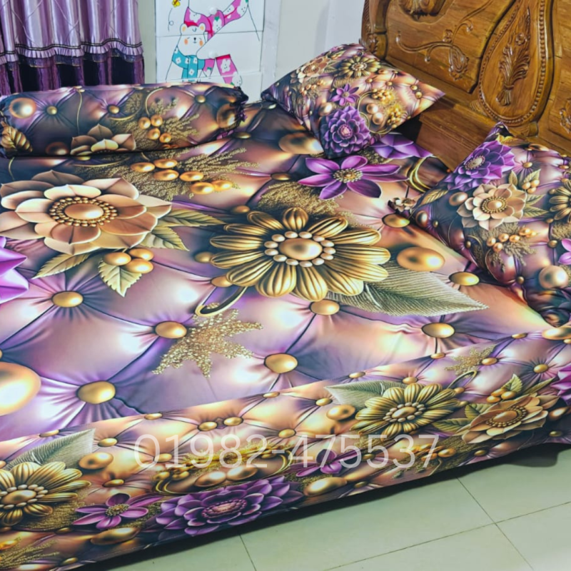 B12 Stylish 3d Bed + Pillow Cover (Premium Quality ১১০০+ গ্রাম DustProof)